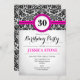 30th Birthday - Hot Pink Black White Damask Invitation