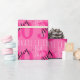 A modern mix of casual, script and serif typography in a fun combination of pinks makes a festive 30th birthday wrapping paper that you can customise for any name.