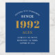 30th Birthday Name 1992 Blue Gold Elegant Chic Wine Label