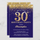 30th Birthday Navy Blue and Gold Glitter Confetti Invitation