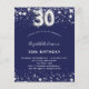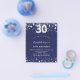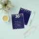 A modern, stylish and glamourous invitation for a 30th birthday party. A navy blue background, decorated with faux silver stars. Personalise and add your name and party details. Number 30 is written with a balloon style font.
