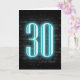 Glowing turquoise neon sign on a dark brick wall for a 30th birthday.