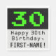 This nerdy and geeky birthday themed paper napkin design features a large green vintage video game style number "30" on a black coloured background. It also features the birthday greeting message "Happy 30th Birthday,", and a customisable name. Fun and nerdy paper napkins like this might be useful at a party being held to celebrate the 30th birthday of an engineer, a computer programmer, or somebody who enjoys 8-bit computer gaming. [~Z0000404]