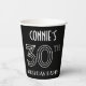 This luxurious 1920s-1930s era inspired art deco style birthday themed paper cup design features a custom name, along with the message “30TH BIRTHDAY PARTY!”. The number “30TH” has a fancy geometric lined appearance. Elegant birthday themed paper cups like these might be used at a birthday party for somebody who is celebrating their thirtieth birthday, or some other 30th event. [~Z0000658]