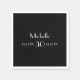 A napkin for an elegant black and white themed 30th birthday party. Templates for a name, age, date of birth and date of the anniversary. White letters. Black background colour. The background is transparent so you can change the colour to match your theme.