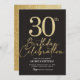 30th Birthday Party Elegant Black & Gold Glitter Invitation