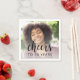 This custom 30th birthday napkin features the guest of honour's personalised photo, name, and birthday, along with the word "Cheers" in elegant black calligraphy script. A white screen helps make the text pop. A great way to celebrate someone who's turning thirty!