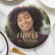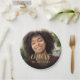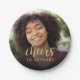 These custom 30th birthday paper plates feature the guest of honour's photo and birthday, along with the word "Cheers" in elegant gold-coloured calligraphy script. A dark screen helps make the text pop. A great way to celebrate someone who's turning thirty!