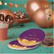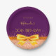 A paper plate for a girly and glamourous 30th birthday party. An elegant feminine purple background with faux rose gold confetti. The text: The name is written with a golden modern hand lettered style script. Template for name, age 30 and a date.