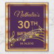 A wine or sparkling wine bottle label for an elegant purple and gold themed 30th birthday party. Templates for a name, age, and date of the party. Golden coloured letters. Purple background colour and a faux gold frame and golden music notes. You can change the background colour to match your theme. Click customise and then "select a background colour" on your right.