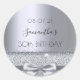 Modern, stylish and glamourous for a young woman's 30th birthday party. A faux silver looking background with an elegant faux silver bow, ribbon and sparkle. The name is written with a modern black hand lettered style script. Template for a date (date of birth or the date of the party) and age 30.