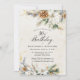 Elegant white flowers are nestled in winter pine greenery and pinecones. The floral design is framed by a soft ivory watercolor wash infused with soft gold flecks. Perfect for a Christmas or winter birthday party.