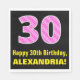 30th Birthday: Pink Stripes and Hearts "30" + Name Napkin