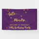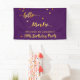 Elegant and modern banner for a 30th birthday party. Girly and feminine purple backdrop and faux gold text written with a trendy hand-lettered style script: hello thirty. With golden dots as decor. Templates for name and the text: Welcome to …. golden letters. You can change the background colour to match your theme. Click customise and then "select a background colour" on your right.