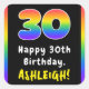 30th Birthday: Rainbow Spectrum # 30, Custom Name Square Sticker