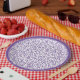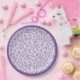 This design has a black random number pattern with age number 30 repeated in varied sizes and angles for an all-over print. The design is trimmed with black and white rings around the rim.