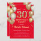 30th Birthday Red and Gold Glitter Balloons Invitation