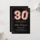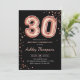 30th Birthday - Rose Gold Balloons Black Invitation