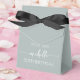 Elegant Minimalist Modern Sage Green Monogram Name Script Signature Custom Personalised 30th (or any age) birthday Favour Box. Featuring first name in a pretty hand lettering swash tail font calligraphy (or typography) on sage green or dusty green colour background. These stylish girly feminine gift boxes great for handing out, gifts, guest gifts and treats during an upcoming birthday party, BBQ, baby shower, sweet 16 birthday, wedding reception, bachelorette party, bridal shower, anniversary and more.