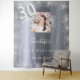 A welcome tapestry for a glamourous 30th birthday party. A faux silver metallic looking background decorated with faux glitter dust. Personalise and add a high quality photo, name and date. Number 30 is written with a balloon style font.