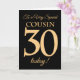 A chic 30th Birthday Card for a 'Very Special Cousin', with a number 30 composed of gold-effect numbers and the word 'Brother', in gold-effect, on a black background. The inside message, which you can change if you wish, is 'Happy Birthday'
