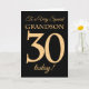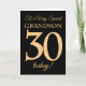 30th Gold-effect on Black for Grandson Birthday Card