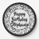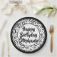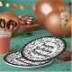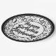This numeric design has a black and white random number pattern with a black milestone number 30 repeated in varied sizes and angles. There is a white circle in the centre for your text and black-and-white rings around the rim.