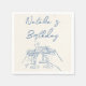 30th Retro Hand Drawn Blue Cream Martini Birthday Napkin