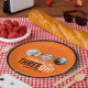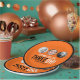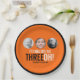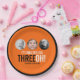 Bright orange with black and white text 30th Three OH! photo birthday party plates. Fun graphic thirtieth birthday party plates for you to customise with your own birth name, dates, and three photos one from each decade! Great to add some fun to special milestone birthday parties. Other matching items and colour options are available. Unique design by www.mylittleeden.com