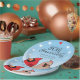 This personalised paper plate makes a cheery accessory for a couple celebrating a 30 year wedding anniversary! A pair of cardinal birds pops up below elegant script text that reads, “30th Anniversary” and two names and a wedding date which can be customised. Hearts form a circular border around the blue sky design.