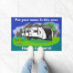 This doormat can be customised to show your name on top. When used outside of your travel trailer, people will know who they are talking to when they see you. Non-slip rubber that won't crack or buckle, this mat resists fading, mould, and mildew and can be easily cleaned with a hose. This version has a trailer similar to a Grand Design Reflection 315rlt trailer. It can be used indoors or out and makes a great welcome mat for your campsite, wherever you may go.