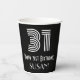 This Roaring Twenties inspired and vintage style birthday themed paper cup design features a large art deco inspired appearance number “31”, along with the birthday greeting message “Happy 31st Birthday,” and a custom name. It also has a black-coloured background. Paper cups like this might be used at a birthday party for somebody who is celebrating their 31st birthday. [~Z0000542]