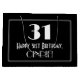 This 1920s-1930s look inspired vintage style birthday-themed gift bag design features a large art deco style inspired number "31", the message "Happy 31st Birthday,", an editable name, and a border pattern consisting of thin lines. The background is coloured black. A gift bag like this might be used when giving a gift or present in honour of somebody’s thirty first birthday. [~Z0000496]