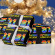 This fun, colourful, and cheerful birthday themed wrapping paper design features a large number "31" and the message "HAPPY BIRTHDAY,", both coloured with a rainbow spectrum gradient inspired pattern, along with a bold yellow editable recipient name. The background is coloured black. Fun wrapping paper like this might be used when wrapping a birthday present or gift being given to somebody who is celebrating their 31st birthday. [~Z0000475]