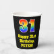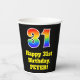 This colourful and fun birthday-themed paper cup design features a large number “31” with a rainbow spectrum gradient inspired pattern, along with the message “Happy 31st Birthday,”, and a customisable name. It also has a black-coloured background. Vibrant, colourful paper cups like this might be fun to have at a birthday celebration being held to honour somebody’s thirty first birthday. [~Z0000537]