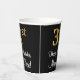This stylish, luxurious, and elegant birthday paper cup design features a large ordinal number “31st” having an imitation/faux gold-inspired appearance, along with the birthday greeting message “Happy 31st Birthday,” and a personalised name in a script-style font. The background is coloured black. Luxurious birthday themed paper cups like this might be used at a birthday party in celebration of somebody’s thirty first birthday. [~Z0000538]