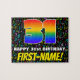 This vibrant and cheerful birthday jigsaw puzzle design features a large number “31” with a multicolored rainbow spectrum inspired gradient pattern, along with the message “HAPPY 31st BIRTHDAY,”, and an editable recipient name. The background features a joyful pattern of musical symbols and notes of various colours and sizes. A bold, customisable birthday puzzle like this might be used to acknowledge somebody’s thirty-first birthday. These might be extra special for a music-themed birthday party. [~Z0000608]