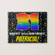 This joyful and bold birthday-themed jigsaw puzzle design features a large number “31” with a multicolored rainbow spectrum inspired gradient pattern, along with the message “HAPPY 31st BIRTHDAY,”, and a custom recipient name. The background has a vibrant, multicolored star shapes pattern. A fun, customised birthday puzzle like this might be a fun way to deliver birthday wishes to somebody who is celebrating their thirty-first birthday. [~Z0000607]