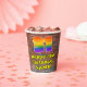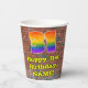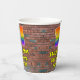 This exciting and fun urban graffiti and street art inspired birthday paper cup design features a large number “31” having a colourful rainbow spectrum gradient inspired pattern. It also features the message “Happy 31st Birthday,”, and an editable name. The background features a brick wall pattern. Colourful, vibrant paper cups like this might be fun to have at a birthday party/celebration being held in celebration of somebody’s 31st birthday. [~Z0000543]