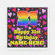 This joyful and cheerful birthday paper napkin design features a large number “31” with a rainbow spectrum gradient inspired pattern, along with the message “Happy 31st Birthday,”, and a custom name. The background features a pattern of purple, pink, and red heart shapes of various sizes. Upbeat, loving paper napkins like this might be fun to use at a birthday party being held to honour somebody’s 31st birthday. [~Z0000550]
