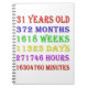 31st birthday counting down the years, days, months, hours, and minutes. A birthday present to give pause for thought! Leap years have been taken into account!