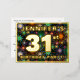 The front of this exciting thirty-first birthday celebration/party foil invitation postcard design features a customisable name, a large number “31st”, the message “BIRTHDAY PARTY!”, and a border. The background of the front features a bold, colourful pattern inspired by bursting celebratory fireworks. The back features personalised details about the event, such as the date, time, venue/location, and any other information that may be relevant. Customised invitations like these might be a fun way to invite guests/attendees to a birthday party being held in celebration of somebody’s 31st birthday. [~Z0000609]