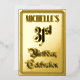 The front of this fancy and ornate thirty-first birthday celebration/party foil announcement card design features the message “31st Birthday Celebration” in opulent script-style text. It also features a customisable name. The back features personalised details about the event, such as the date, time, place/venue, and any other information that may be relevant. Luxurious, elaborate, editable invitations like these might be used to invite guests to a birthday party being held to honour somebody’s thirty-first birthday. [~Z0000596]