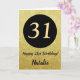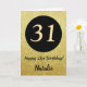 31st Happy Birthday Black and Gold Glitter Card with personalised name. For further customisation, please click the "Customise it" button and use our design tool to modify this template.