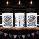 This custom 2-sided 326 TRS Bulldogs mascot Air Force BMT (basic military training) Graduation coffee mug, shown here in the 15 oz. size, is the perfect gift for the Air Force Mum, Dad, family member, or soon-to-be Airman graduate in training / boot camp at Lackland! ♥ Designed by an Air Force Mum ♥ **Navy Blue is the official colour of the 326 Bulldogs Training Squadron. Mug template can be easily personalised with trainee's last name, 326 TRS / FLT ###, funny mascot muscle heart tattoo name (please try to keep to 3 letters) on both sides, and graduation date down the centre. Custom design requests & questions are always welcome, - and if you would like to know where to get the Airman photo necklace shown in the photo, email: contact@figandlilyco.com. Check out the whole BULLDOGS collection in my shop by clicking on the blue "by FigLilyCo--Military" link in the top right-hand corner of this page, + my personalised invitations, basic training cards, graduation cards / t-shirts / vinyl banners to help Air Force wing families like ours get through the long 7.5 weeks of BMT, graduation week, tech school, and beyond. We send our sincere blessings and HUGE thanks for the service, courage, and sacrifice of your US Airman!