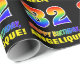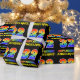 This colourful, fun, and cheerful birthday themed wrapping paper design features a large number "32" and the message "HAPPY BIRTHDAY,", both coloured with a rainbow spectrum gradient inspired pattern, along with a bold yellow editable recipient name. The background is coloured black. Fun birthday themed wrapping paper like this might be used when giving a gift or present in celebration of somebody’s 32nd birthday. [~Z0000475]
