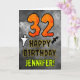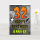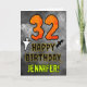 The front of this spooky and scary Hallowe’en themed birthday greeting card design features a large number “32”. It also features the message “HAPPY BIRTHDAY,”, and a personalised name. There are also depictions of a ghost and a bat on the front. The inside features a personalised birthday greeting message, or could perhaps be cleared and left blank if a message is to be written by hand instead. A personalised birthday card like this might be a fun way to acknowledge somebody’s thirty second birthday that also falls on October 31st (Halloween). [~Z0000547]
