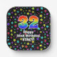 32nd Birthday: Fun Stars Pattern and Rainbow “32” Paper Plate