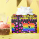 This cheerful and colourful birthday wrapping paper design features a large number “32” with a rainbow spectrum gradient inspired pattern, along with the message “Happy 32nd Birthday,”, and a personalised name. The background features a pattern of red, pink, and purple heart shapes of various sizes. Personalised wrapping paper like this might be used when giving a gift or present in honour of somebody’s thirty second birthday. [~Z0000549]