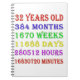 32nd birthday counting down the years, days, months, hours, and minutes. A birthday present to give pause for thought! Leap years have been taken into account!